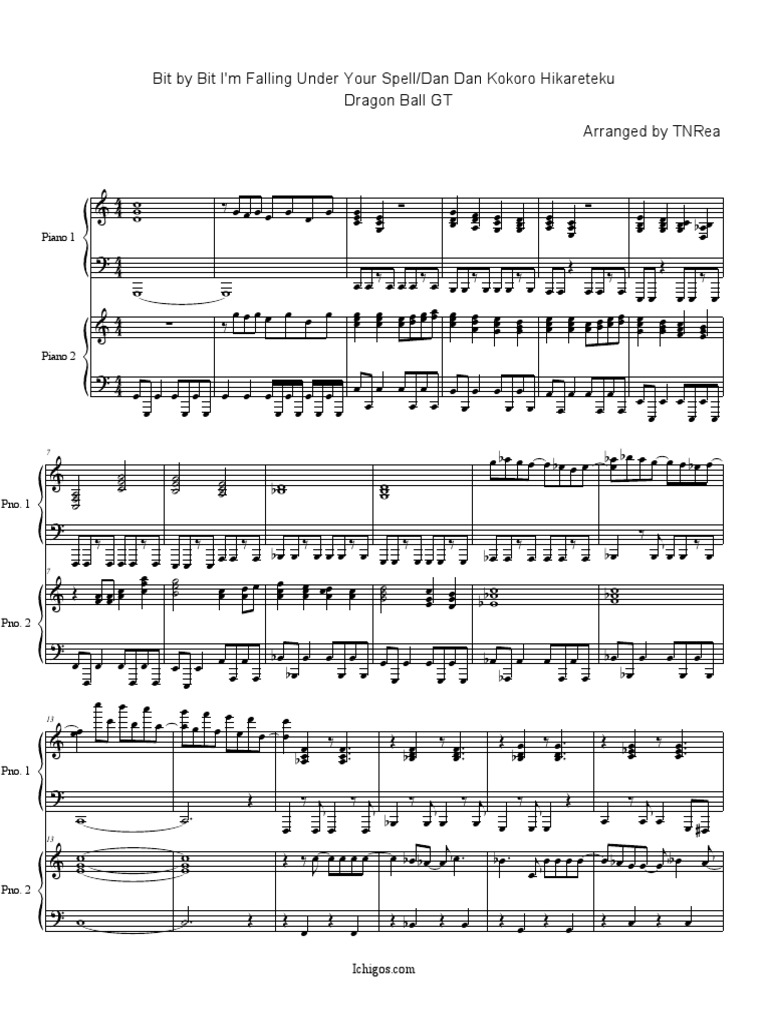 Dan Dan Kokoro Hikareteku Dragon Ball Gt Op Free Piano Sheet Music