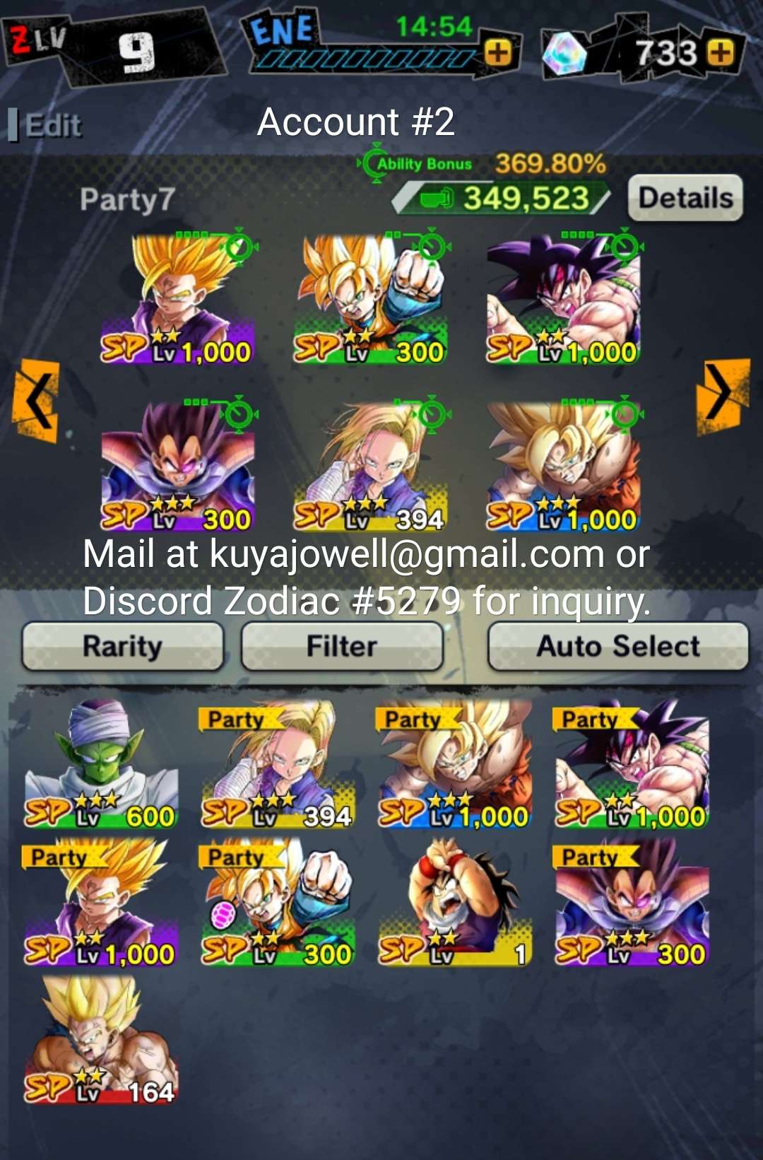 Dragon Ball Legends Account 132 Sparking 256 Char 700 Max