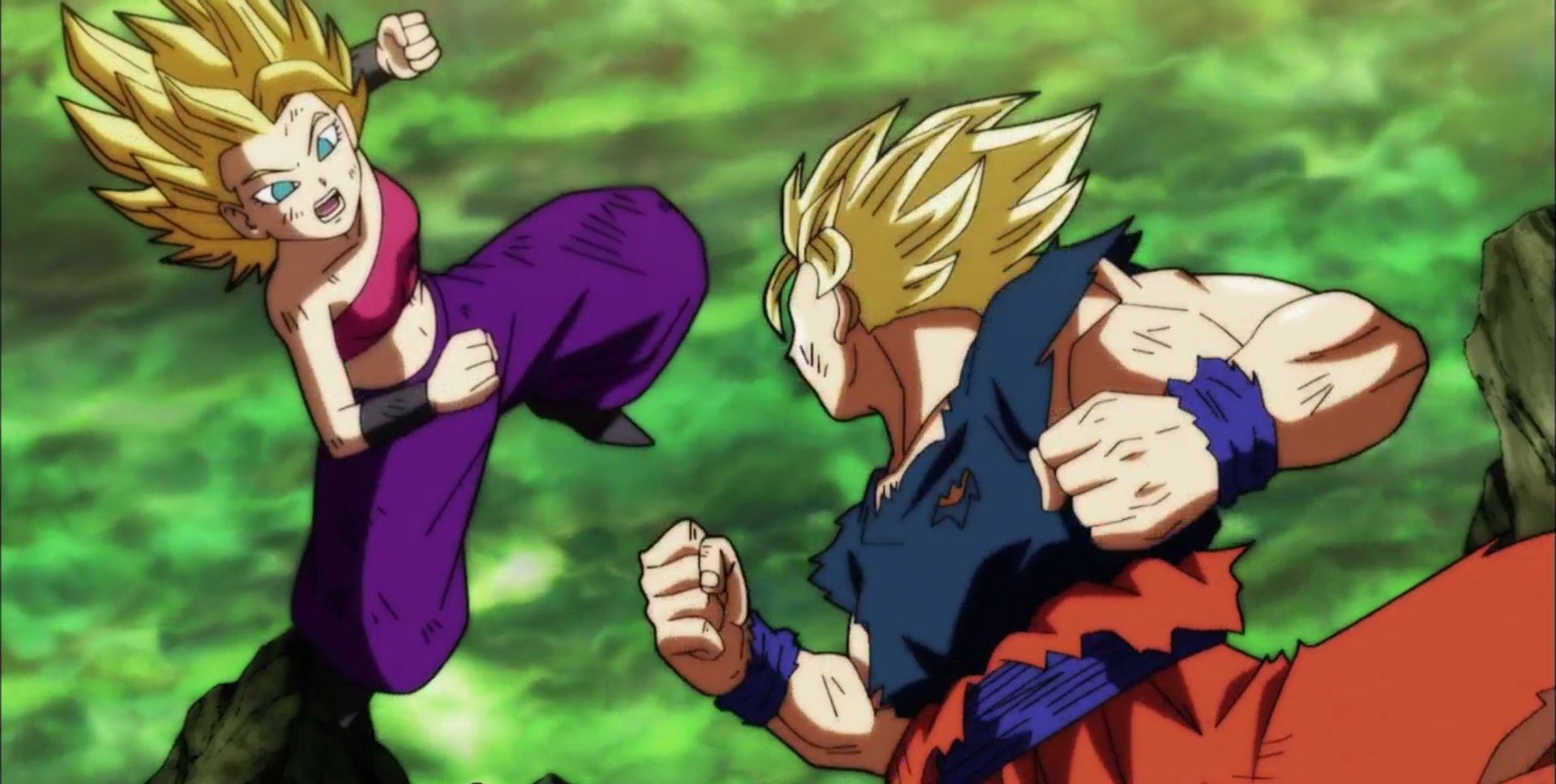 Goku Base Super Saiyan 2 Vs Caulifla Super Saiyan 2